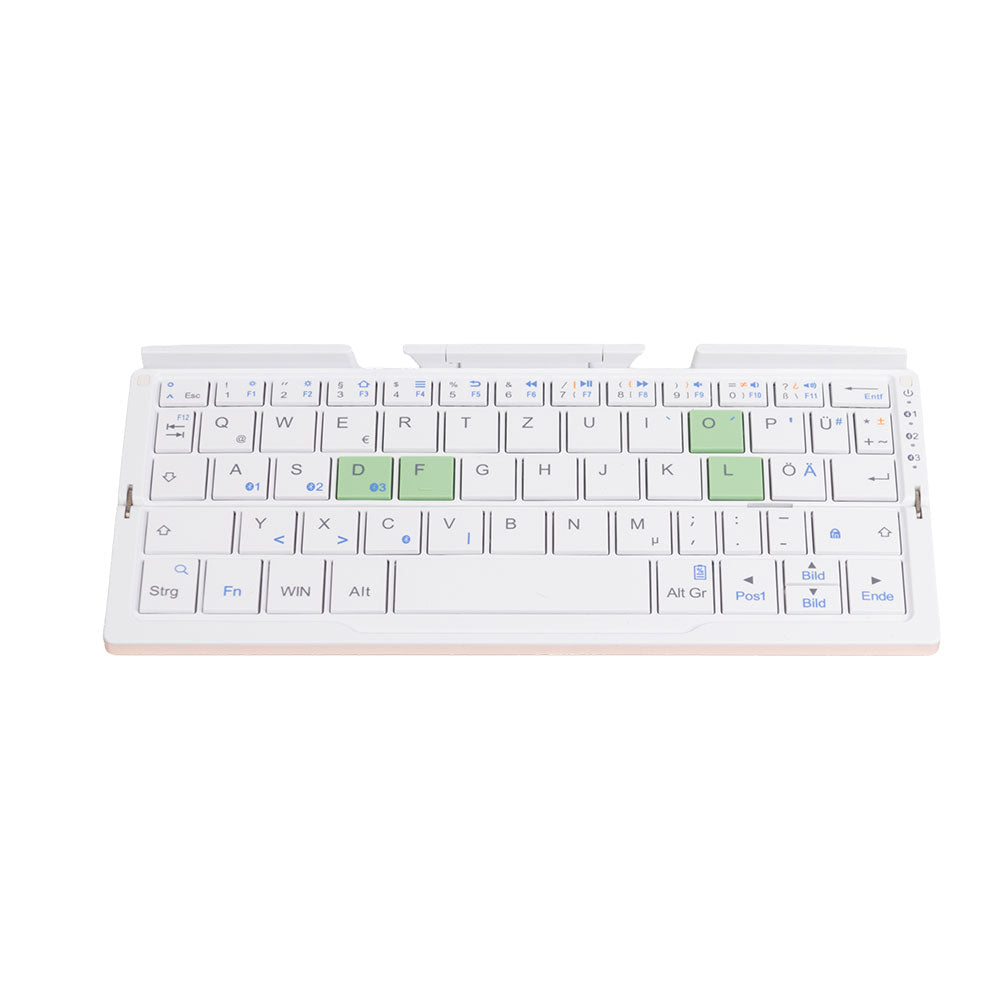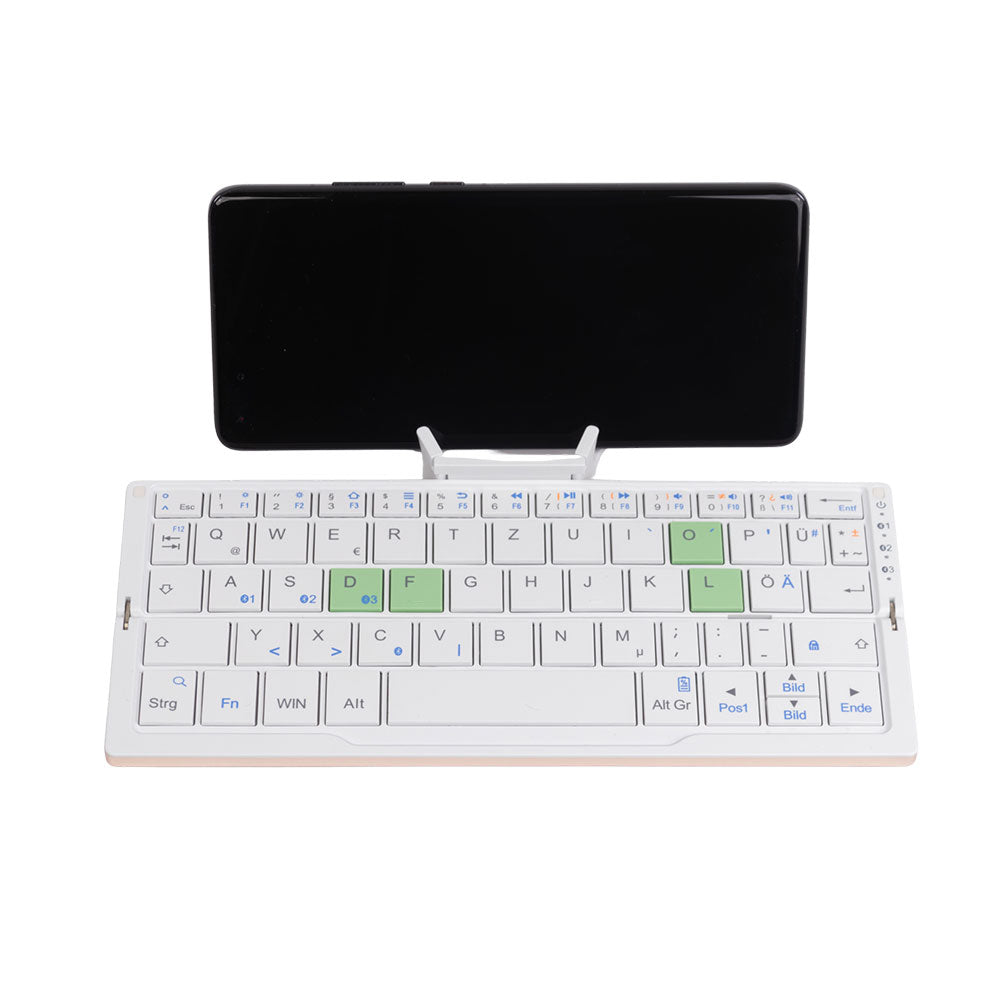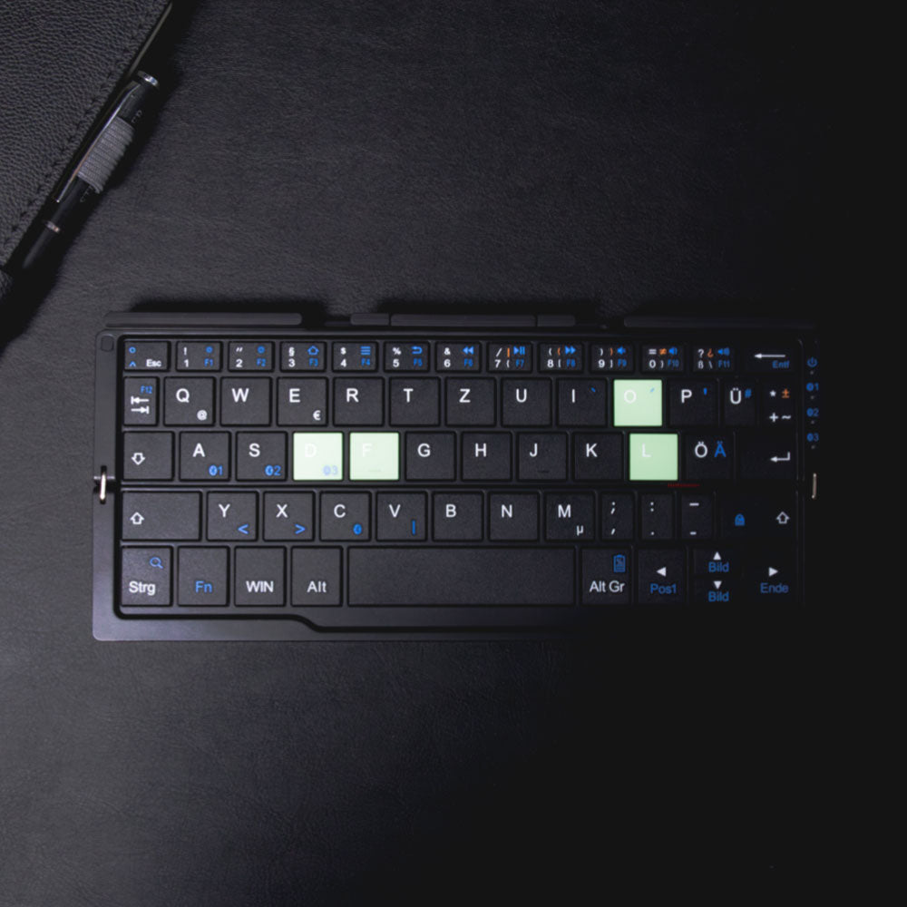 Die Foldboard ist eine faltbare Bluetooth-Tastatur mit deutschem QWERTZ-Layout, kompakt, leicht und kompatibel mit Android, iOS und Windows.