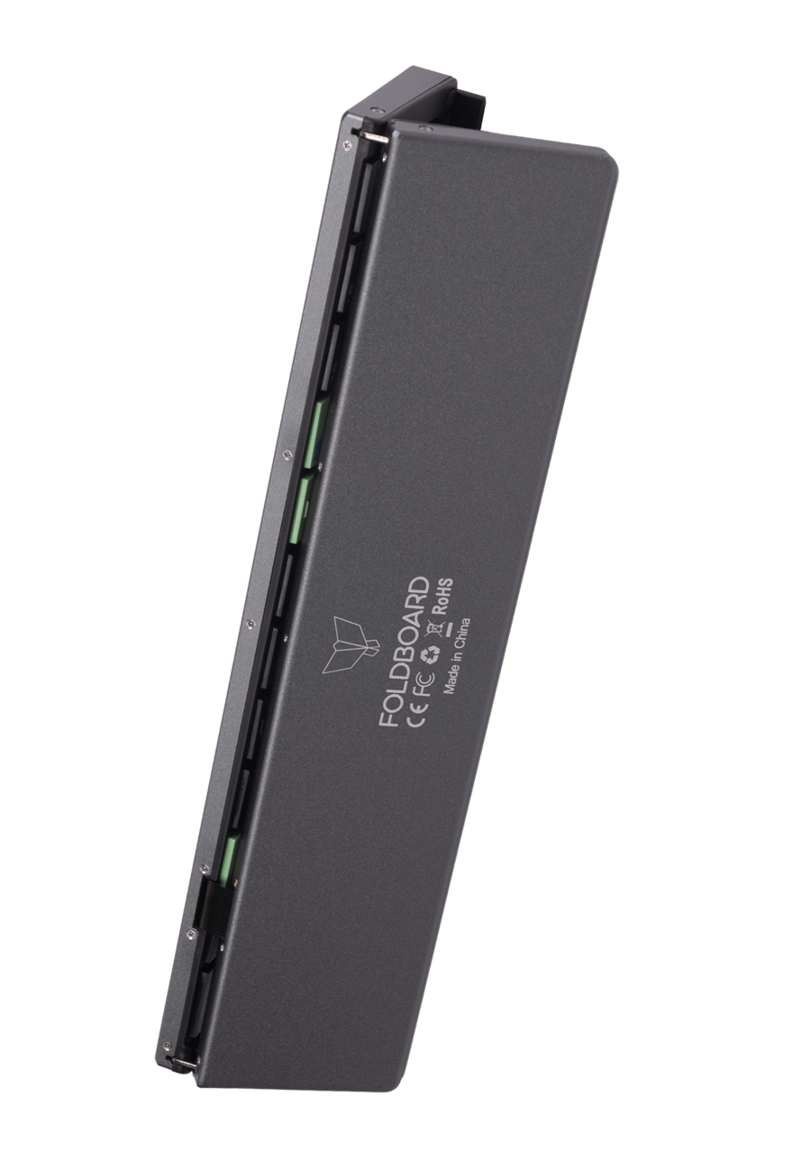 Die Foldboard ist die perfekte Lösung für alle, die auch unterwegs produktiv bleiben möchten. Mit ihrem faltbaren Design misst sie im zusammengeklappten Zustand nur 20 x 4,5 x 1,2 cm – klein genug, um in jede Hosentasche oder einen Rucksack zu passen. Egal ob auf Reisen, im Café oder im Zug, die Foldboard begleitet dich überall hin.