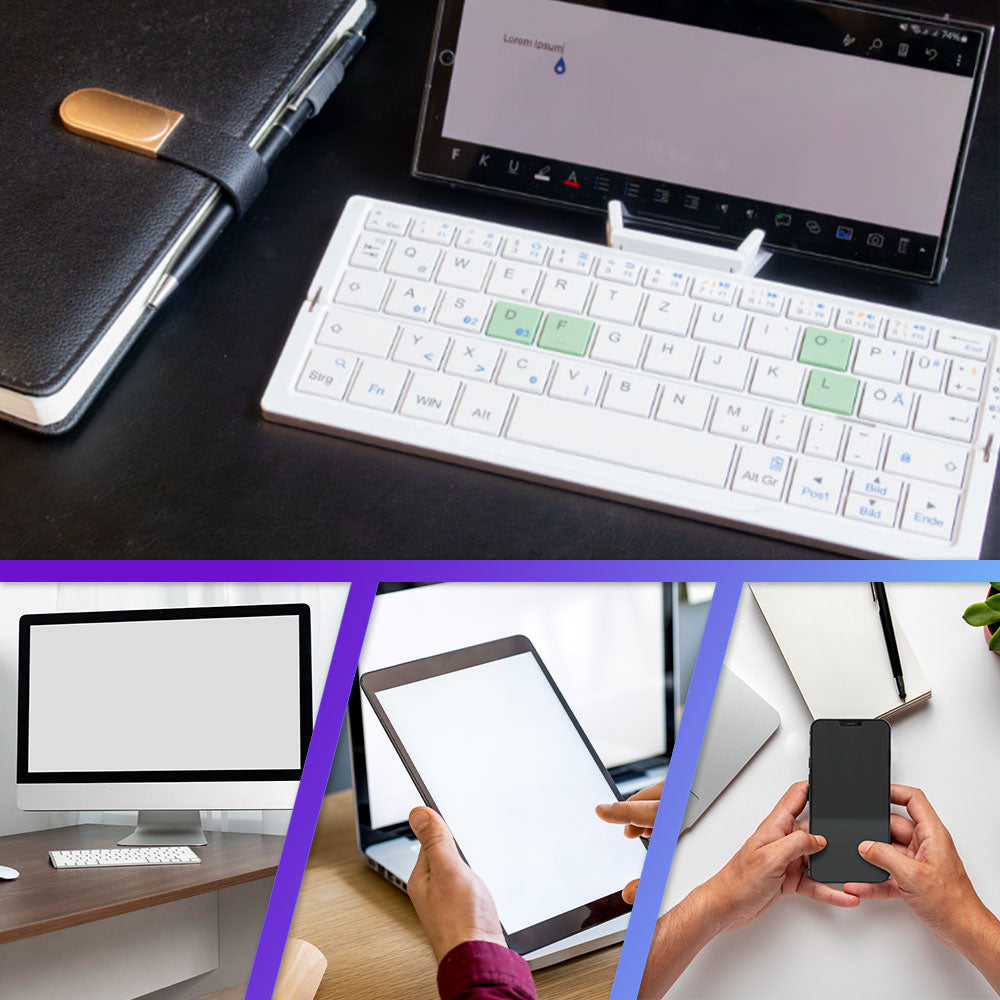 Die Foldboard verfügt über ein hochwertiges deutsches QWERTZ-Layout mit Umlauten (Ä, Ö, Ü) und einem präzisen Scherenschalterdesign. Dies sorgt für ein angenehmes, leises und schnelles Tippen – perfekt für Bibliotheken, Büros oder öffentliche Orte. Lässt sich problemlos mit allen Endgeräten wie Smartphones, Tablets & Computern verbinden.